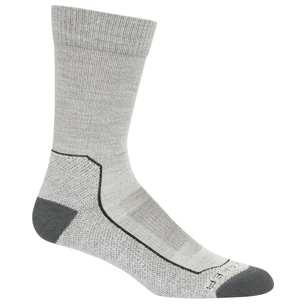 Durable, crew-length merino wool socks that are stretchy, breathable, and odor-resistant with full cushion, the Hike+ Light Crew socks feature an anatomical sculpted design for day hikes and backpacking trips.
